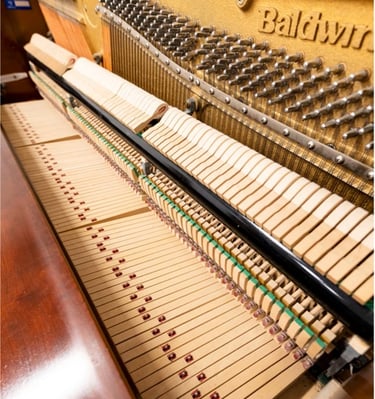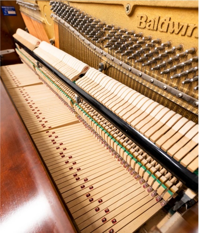 The space features a Baldwin Acrosonic piano, perfect for pianists and vocalists seeking a calm, inspiring environment to practice and create.